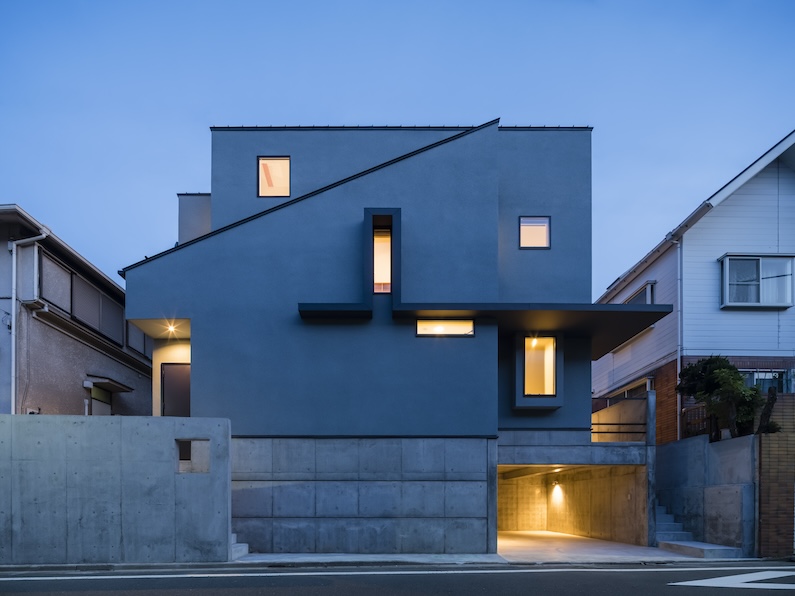 4人家族の住まいと賃貸住宅4戸からなる建築の計画。 引継ぐべき地脈を敷地の余白と位置づけ、新たな活きた街の空白を次世代に継承する。 建築しないエリアを先に定め、その周縁に片流型ボリュームを自在に配し、他者と緑を共有する為「派生的手法」により複合的要求に応えながら陰影と懐のある住環境を生成した。